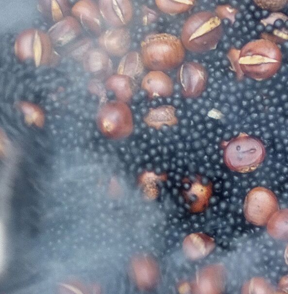 我們生產(chǎn)的板栗砂顆粒大小均勻全部為實(shí)心鋼化陶瓷磨制做到了高溫炒制時(shí)候不掉渣不化粉